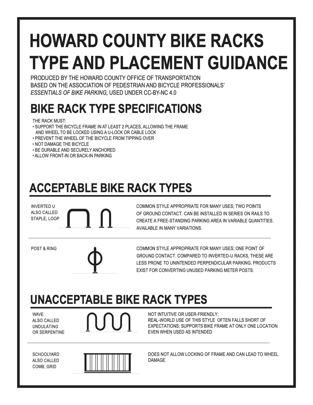In April of 2016, Howard County adopted its first Bicycle Master Plan. The Office of Transportation was the lead agency administering the planning process. The plan was developed with extensive input from the community, as well as many related agencies, in particular the Departments of Planning and Zoning, Public Works and Recreation and Parks. A variety of methods were used to gather public input, including a series of public workshops, an online survey, and availability of an interactive online map.